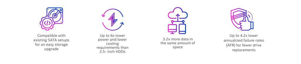 Simply by integrating SSDs into the environment, organizations can improve server agility with up to 300x more IOPS/TB than HDDs, supporting more users and better services to grow the business without expanding the server footprint. Additionally, the flex workload feature enables a common drive type to cover more workloads with flexible capacity, flexible endurance, and flexible power-efficient performance.